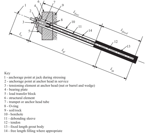 In Geo-technical engineering it is termed as “Prestressed Post tensioned Grouted Ground Anchors”. The ground anchors can be made by using Wire or cable Anchors of high grade steel Bars.